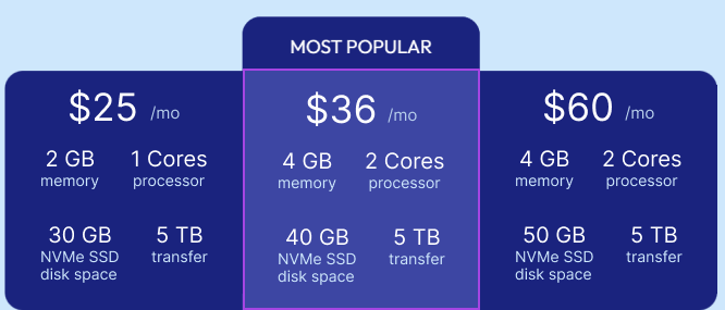 Use our simple VPS pricing calculator below to find the estimated cost of your server.
